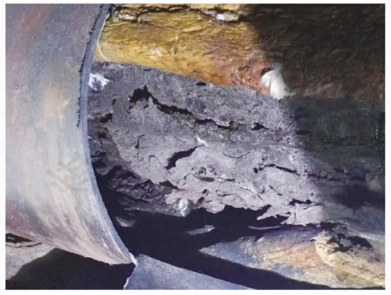 图4 某工厂输送蒸汽用管沟敷设保温管道聚氨酯炭化情况